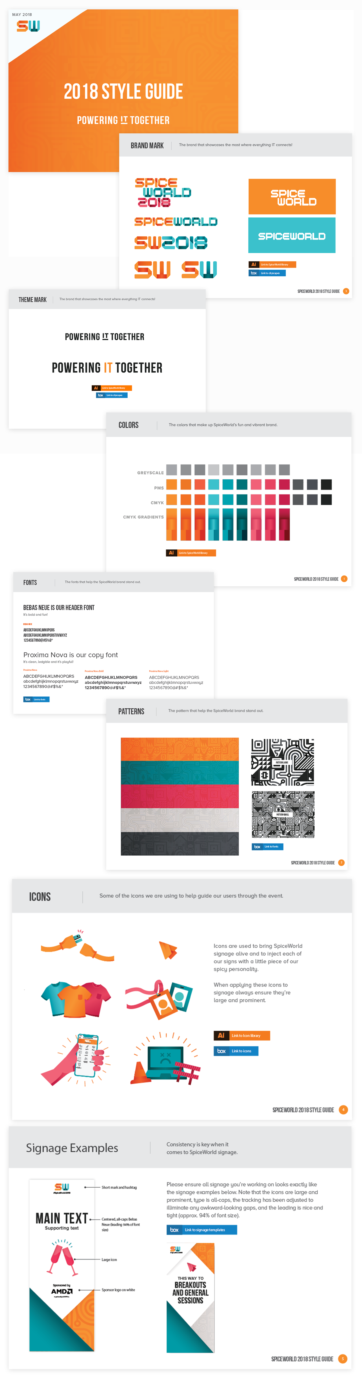 We started with a basic set of brand guidelines to help consistency across the project and event. This  helped designers have a starting place on all projects and gave the production designers the ability to move at a fast pace.